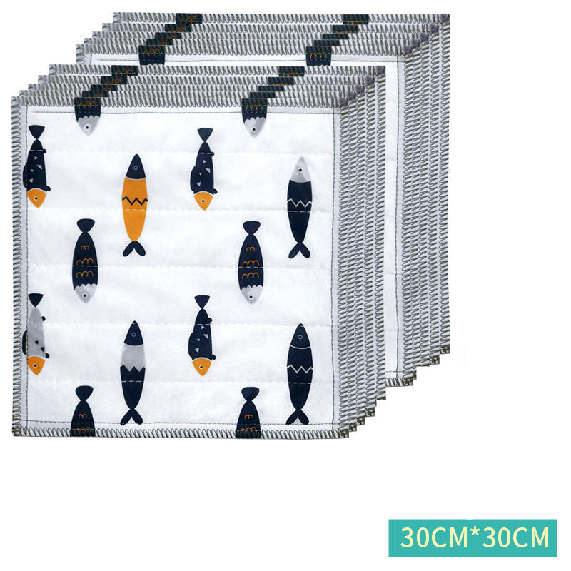 Material: cotton yarn Color: 1Set: 6 layers of cotton yarn [large size 10 packs] colorful fish print 25*25cm, 2Set: 6 layers of cotton yarn [large size 20 packs] colorful fish print 25*25cm, 3Set: 7-layer cotton yarn [large size 10 packs] tableware printing 25*25cm, 4Set: 7-layer cotton yarn [large size 20 pieces] tableware printing 25*25cm, 5Set: 6 layers of cotton yarn [extra large 10 packs] colorful fish print 30*30cm, 6Set: 6 layers of cotton yarn [extra large 20 packs] colorful fish print 30*30cm, 7Set: 6-layer large [pack of 30] 28*28cm, 8Set: 8-layer extra large [pack of 20] 30*30cm, 9Set: [disposable wipes] 3 rolls of 150 packs Function: no trace